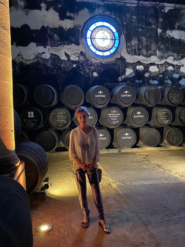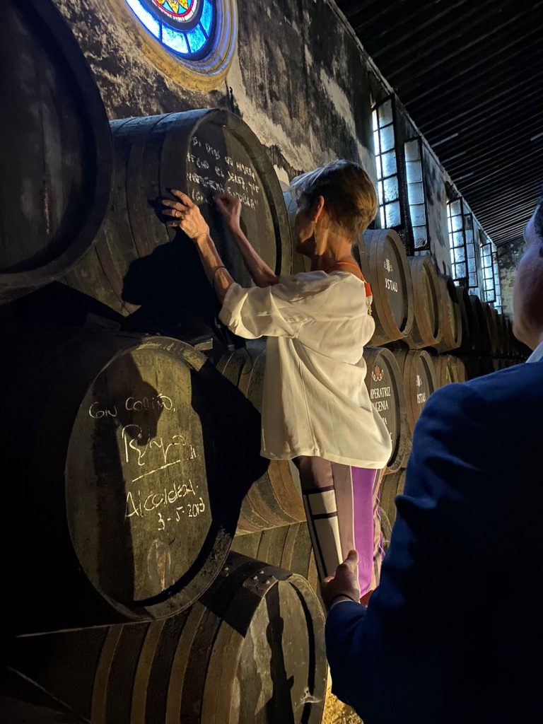 Además de asistir al Campeonato de Golf, la presidenta del del Consejo General de la Abogacía Española aprovechó su estancia en la ciudad para visitar una típica bodega jerezana, Lustau, en la que Victoria Ortega dejó constancia de su visita firmando una bota de vino.